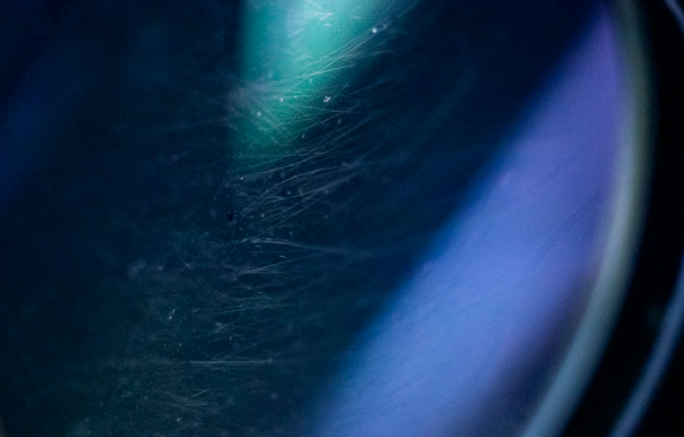 Petites rayures peu profondes réparties de manière aléatoire sur le verre.