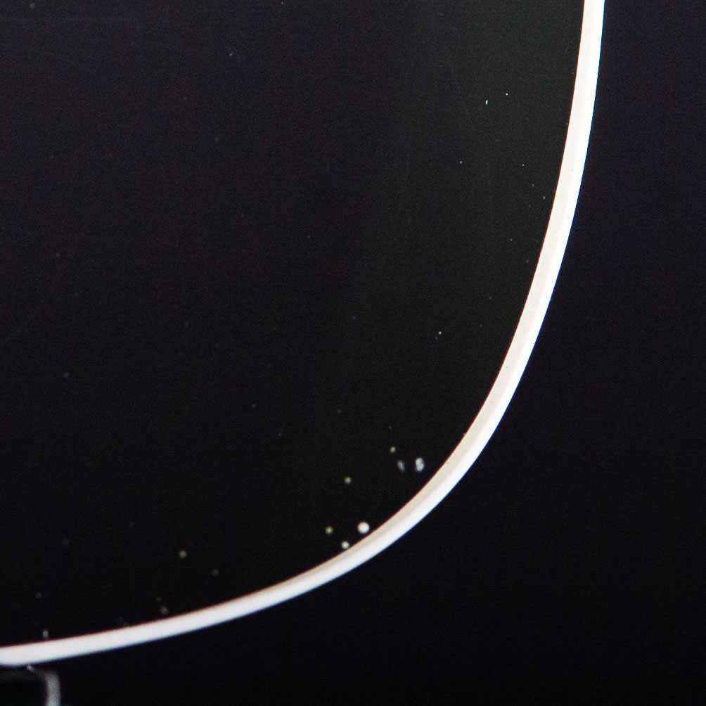 Traces d’impacts au sommet de la face avant du verre.
